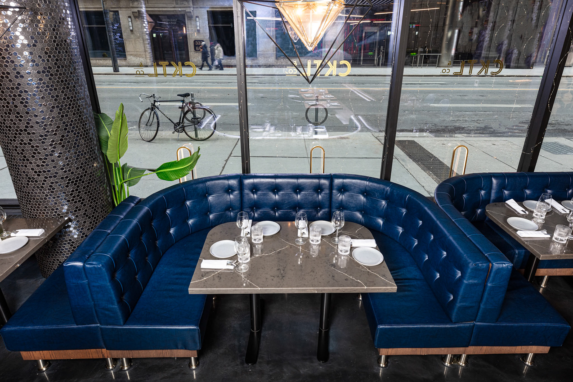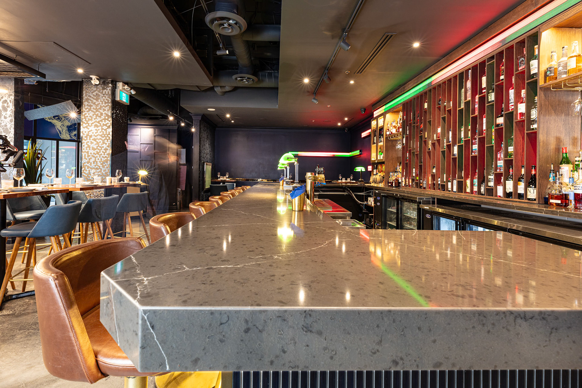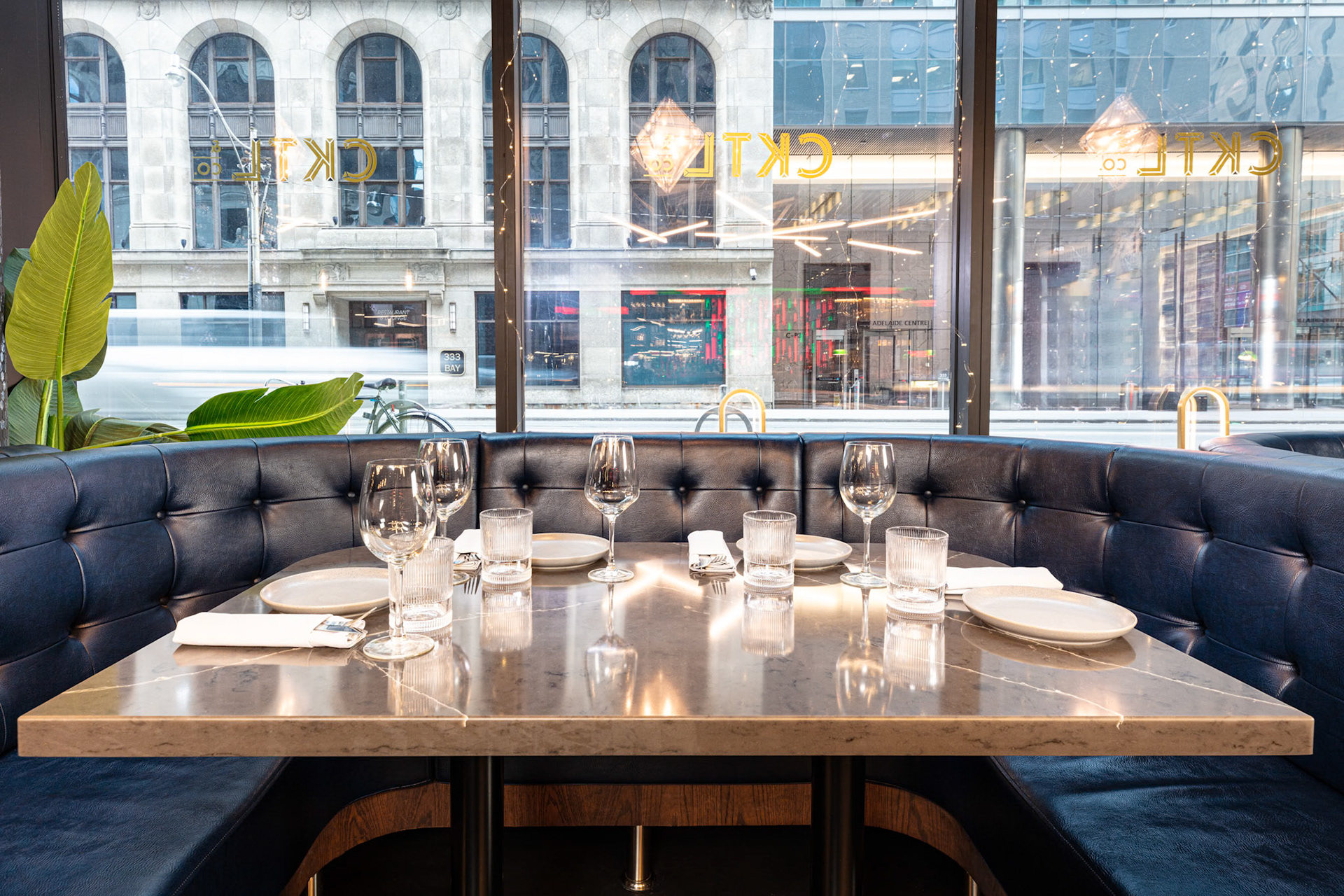 On behalf of solid-surfacing giant Wilsonart, we photographed the installation of their product, used for the tables, bar top, host desk and washroom cubicles, at CKTL & Co., the trendy bar and restaurant in Toronto's Financial District. Interior design by Yellowbird Design, Hannon, Ontario.