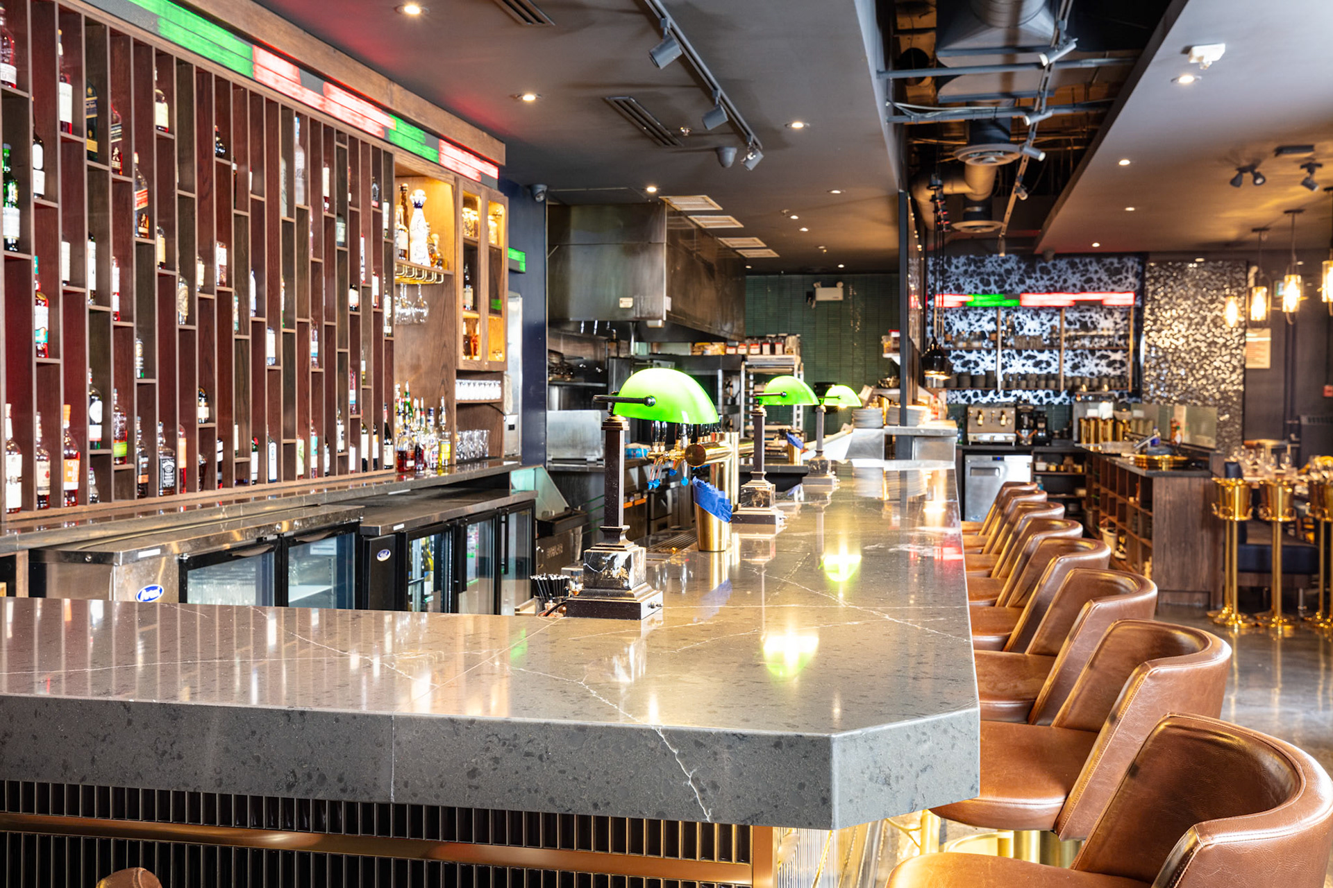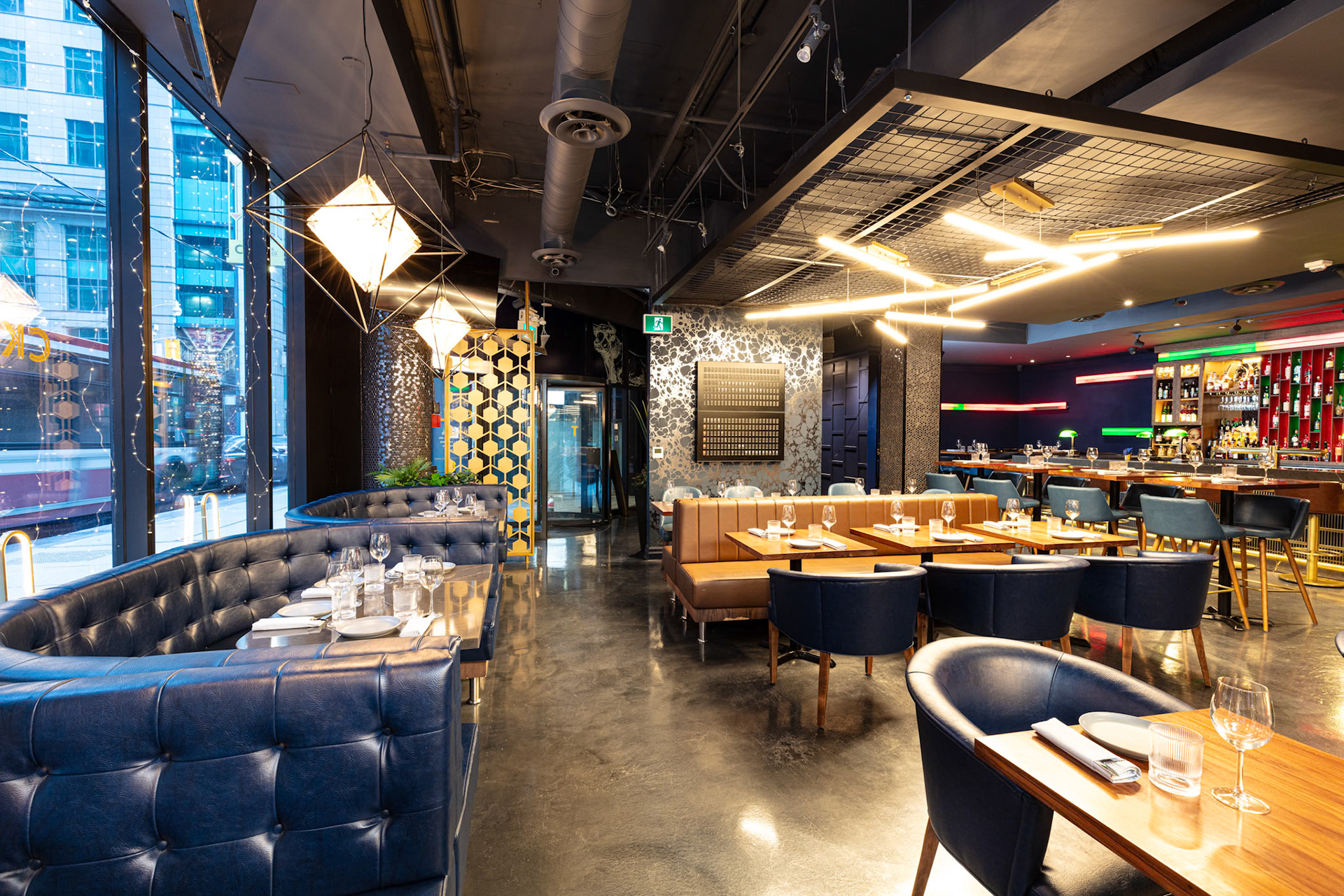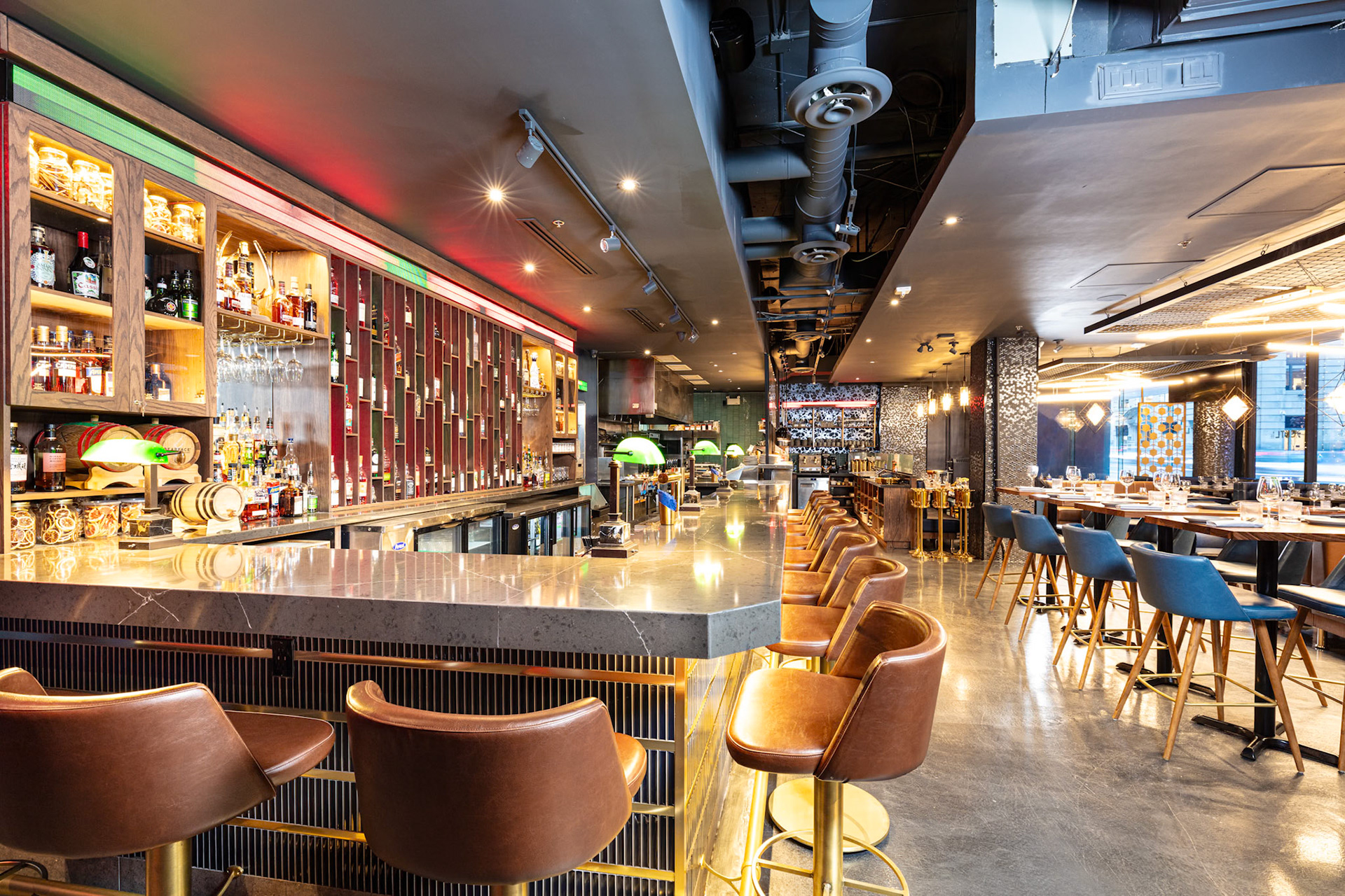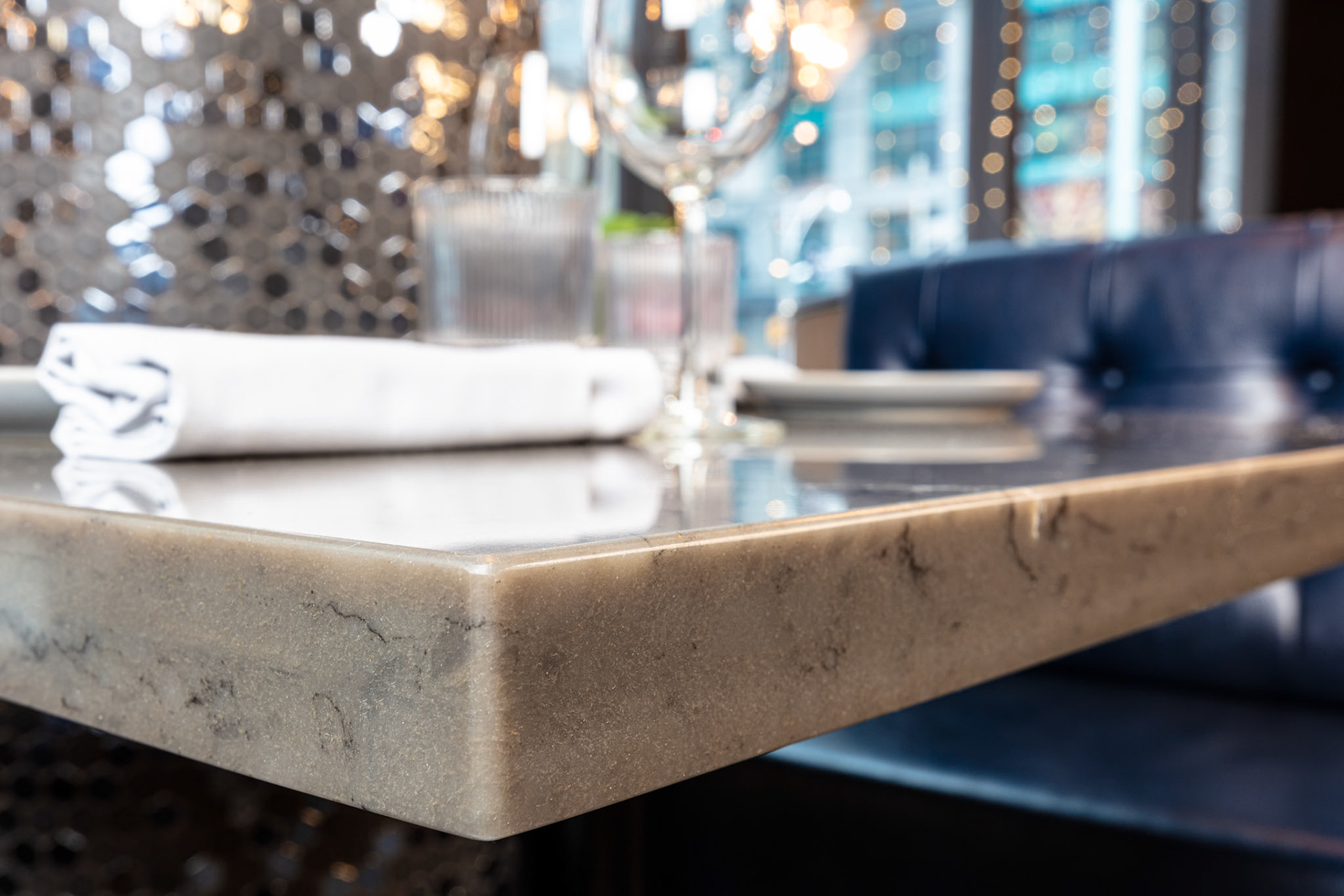 On behalf of solid-surfacing giant Wilsonart, we photographed the installation of their product, used for the tables, bar top, host desk and washroom cubicles, at CKTL & Co., the trendy bar and restaurant in Toronto's Financial District. Interior design by Yellowbird Design, Hannon, Ontario.