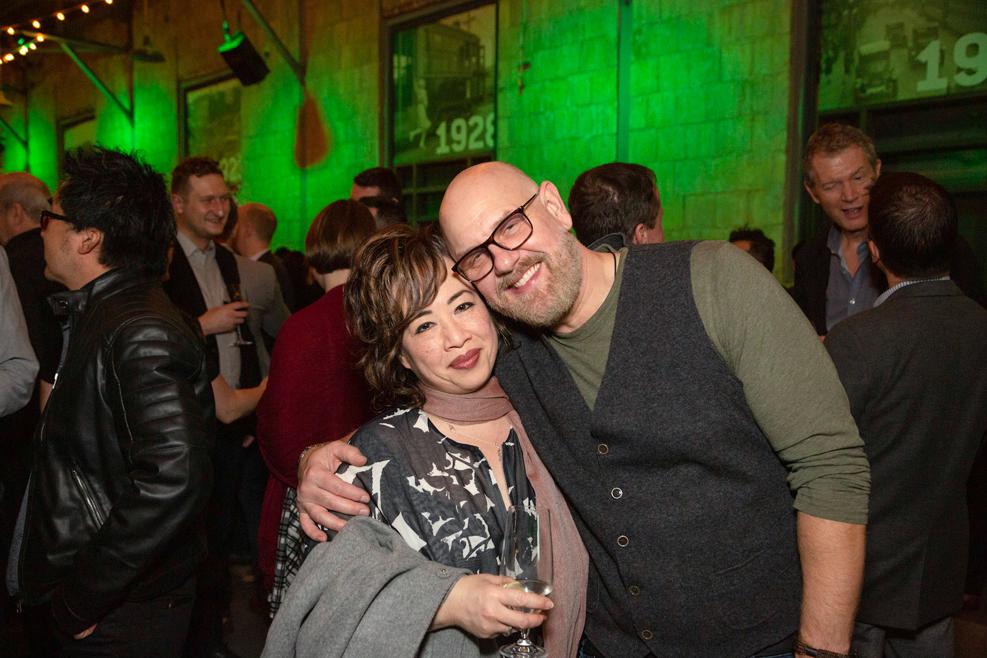 (Images and text published in Canadian Interiors Scene section.) The Toronto Society of Architects Bash holds its Christmas party in a building that exemplifies design excellence in the city. 2019’s event took place at Artscape Wychwood Barns, an adaptive-reuse project of an abandoned century-old streetcar maintenance facility that was slated for demolition. CUTLINES: From construction firm Boszko & Verity: Diane Gropp, controller; Carmen Lam, office assistant; Therese Baron, marketing manager; and Magdalena Turbak, project co-ordinator. RJC Engineers’s Daniel Sokolowski, design engineer, structural engineering; and Jen Watson, associate; Gianni Meogrossi, associate, Adamson Associates Architects; and architectural consultant Ross Carter-Wingrove. Elizabeth Vandertuin and Howard Rideout of their eponymous architecture firms. Owen Peat of his self-named architecture firm; Lean Kim, architect, Kilogram Studio; Judah Mulalu, principal, Ten-2-Four Architecture; Tura Cousins Wilson, architect, Diamond Schmitt; and Bill Lobb of his eponymous architecture firm. Barbora Vokac Taylor Architect’s Sarah McMurtry, intern architect; Liam Van Steekelenburg, intern; and the eponymous Barbora. Ivan Franko, Paula Bowley and Susan Speigel of their respective eponymous architecture firms; and Lloyd Alter, design editor of TreeHugger and adjunct professor teaching sustainable design at Ryerson University School of Interior Design. Leslie Jen, design journalist and communications consultant; and Martin Spreer, publisher, Canadian Interiors. Lilly-Morgane Lecointe, project architect, and Callum Lewis-Laverty, architect, RAW Design; and Megan Torza, partner at architecture firm DTAH and TSA vice chair. Eva Chau, project manager, Aspect Structural Engineers; Carlos de Oliveira, president and CEO, Castconnex, which makes cast-steel components for building and bridge structures; Renée Mackay-Lyons, associate, Blackwell. The open bar; the crowd from the second-storey overlook.