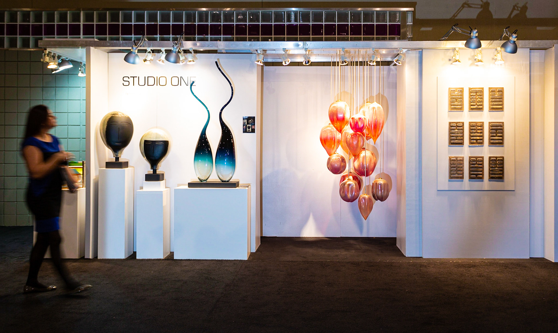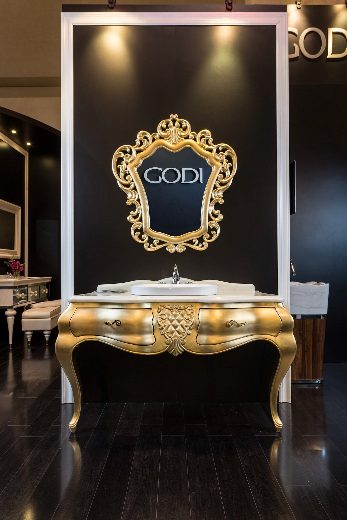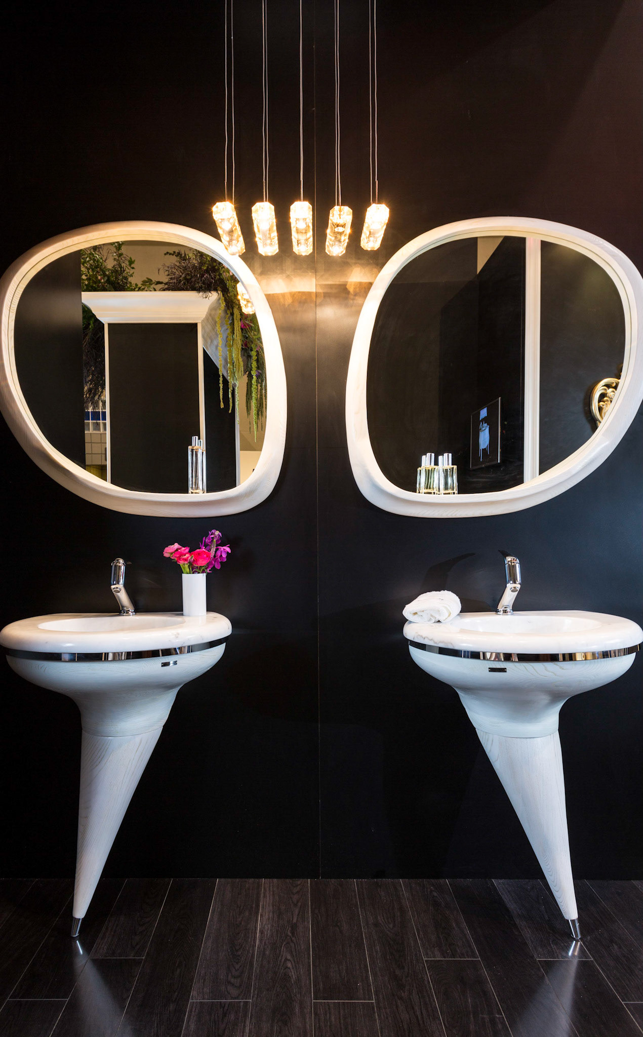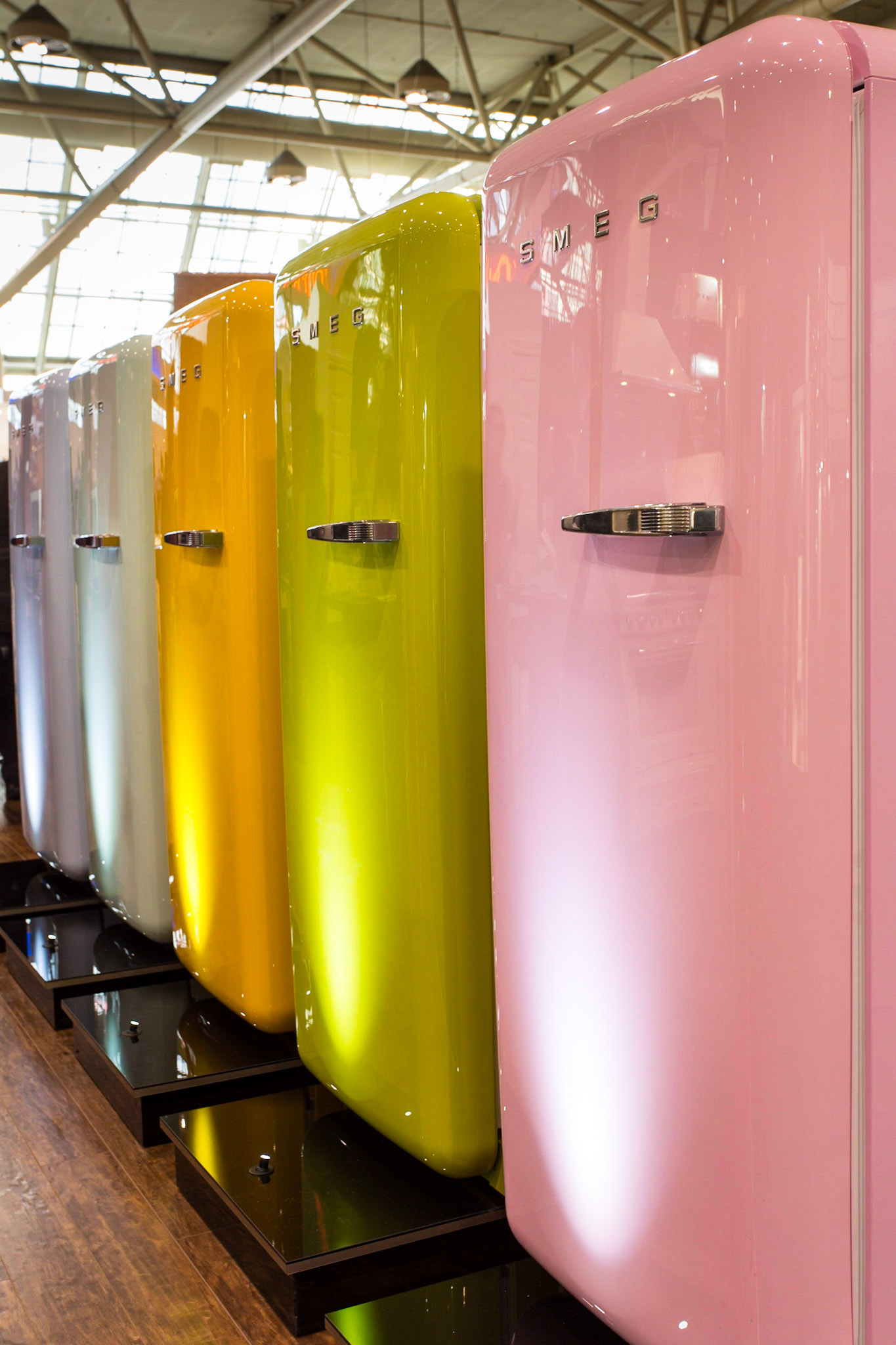 Views of the Godi Bathrooms booth, Smeg refrigerator display at Euroline Appliances booth, and the Studio One Booth at the Interior Design Show, Toronto.
