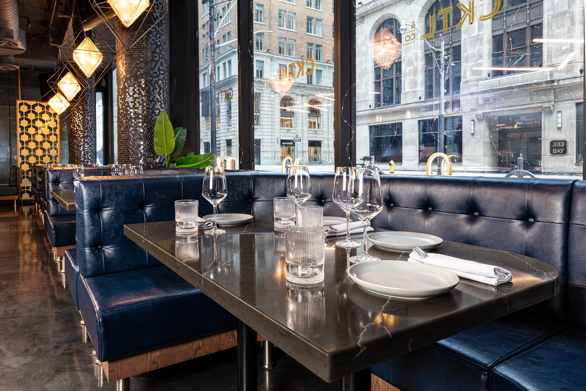 On behalf of solid-surfacing giant Wilsonart, we photographed the installation of their product, used for the tables, bar top, host desk and washroom cubicles, at CKTL & Co., the trendy bar and restaurant in Toronto's Financial District. Interior design by Yellowbird Design, Hannon, Ontario.